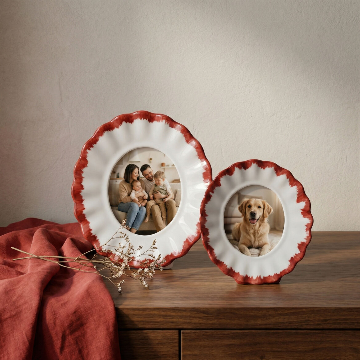 Modern porselen tasarımı ve bordo rengiyle öne çıkan bu 17 cm dekoratif çerçeve, anılarınızı estetik bir şekilde sergilemek için tasarlanmıştır.