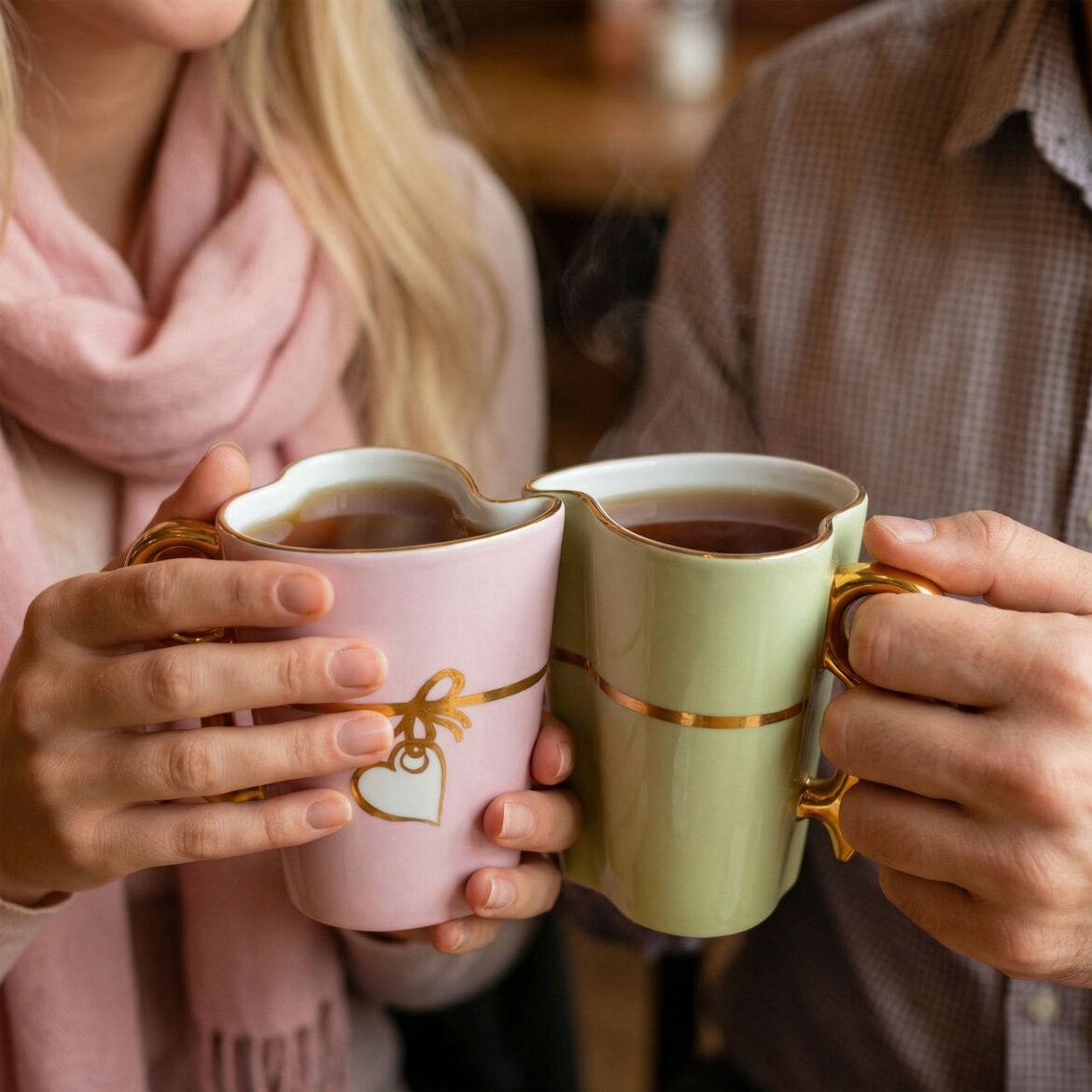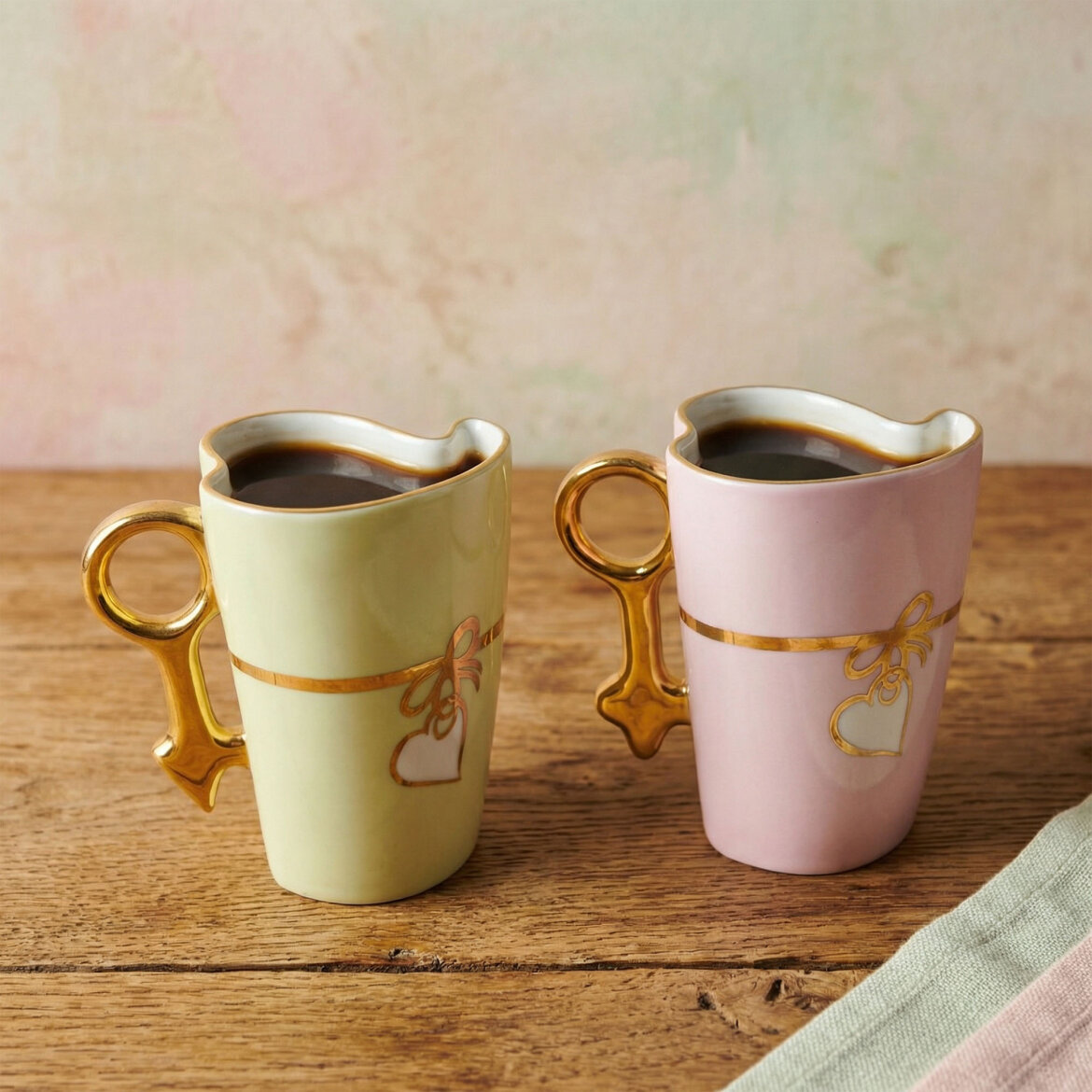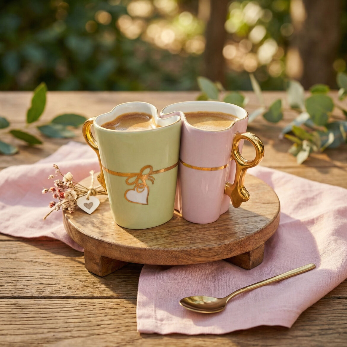 Kalp formundaki özel tasarımıyla öne çıkan porselen kupa, el dekoru detaylarıyla sıcak ve samimi bir görünüm sunar. Günlük kahve ve çay keyfinize şık bir dokunuş katarken dekoratif yapısıyla da dikkat çeker.